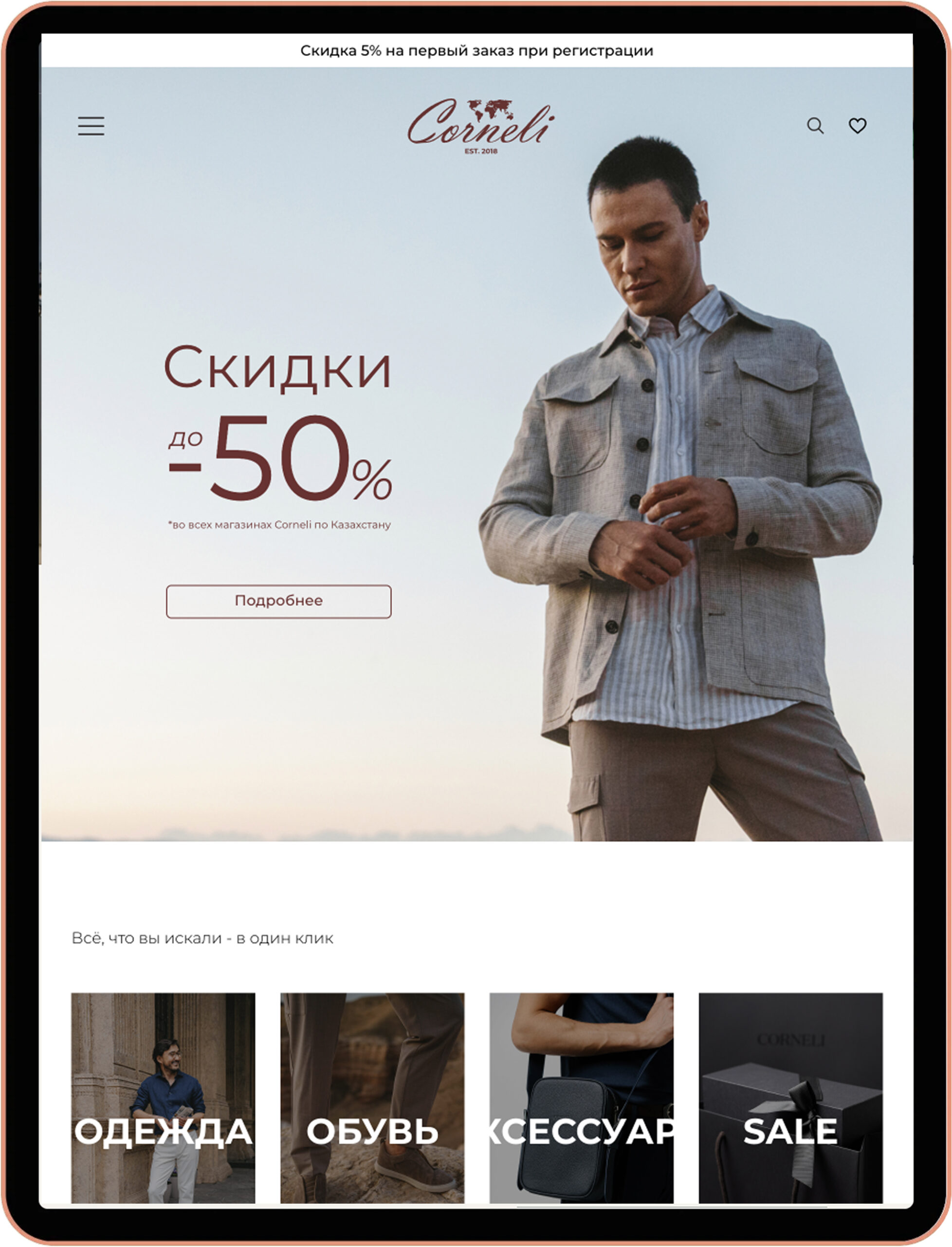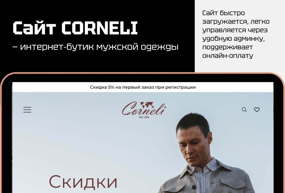 - Разработали стильный интернет-магазин под бренд Corneli
